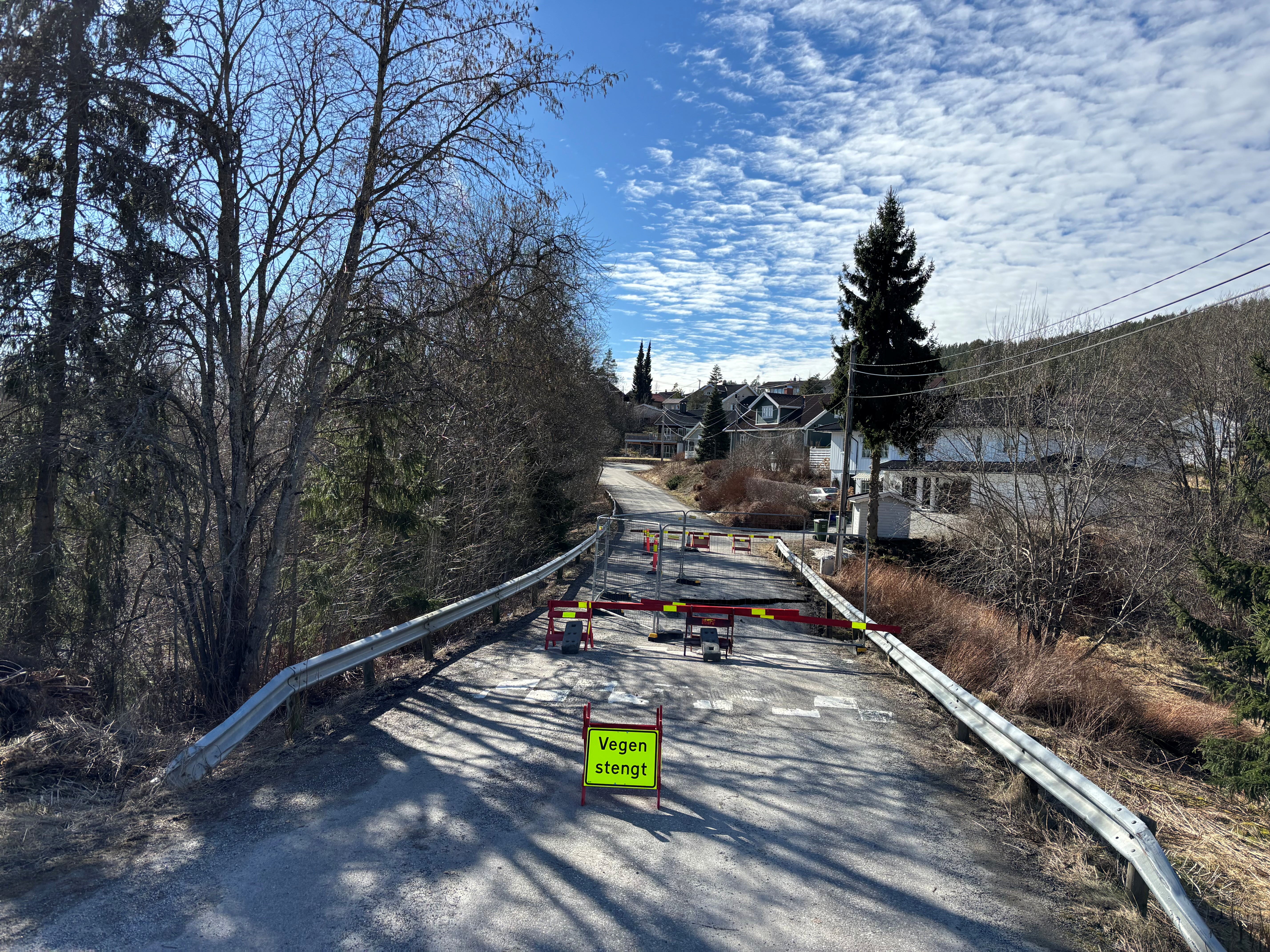 Etter flommen fredag 13. mars har Einerhaugveien på Bjørkelangen vært stengt ved undergangen til lysløypa. Bekken er ledet i rør forbi undergangen, men stålrøret har sviktet, og det må gjennomføres omfattende arbeid før veien kan åpnes igjen. Det blir etablert en sikker gangforbindelse over området frem til arbeidene starter.