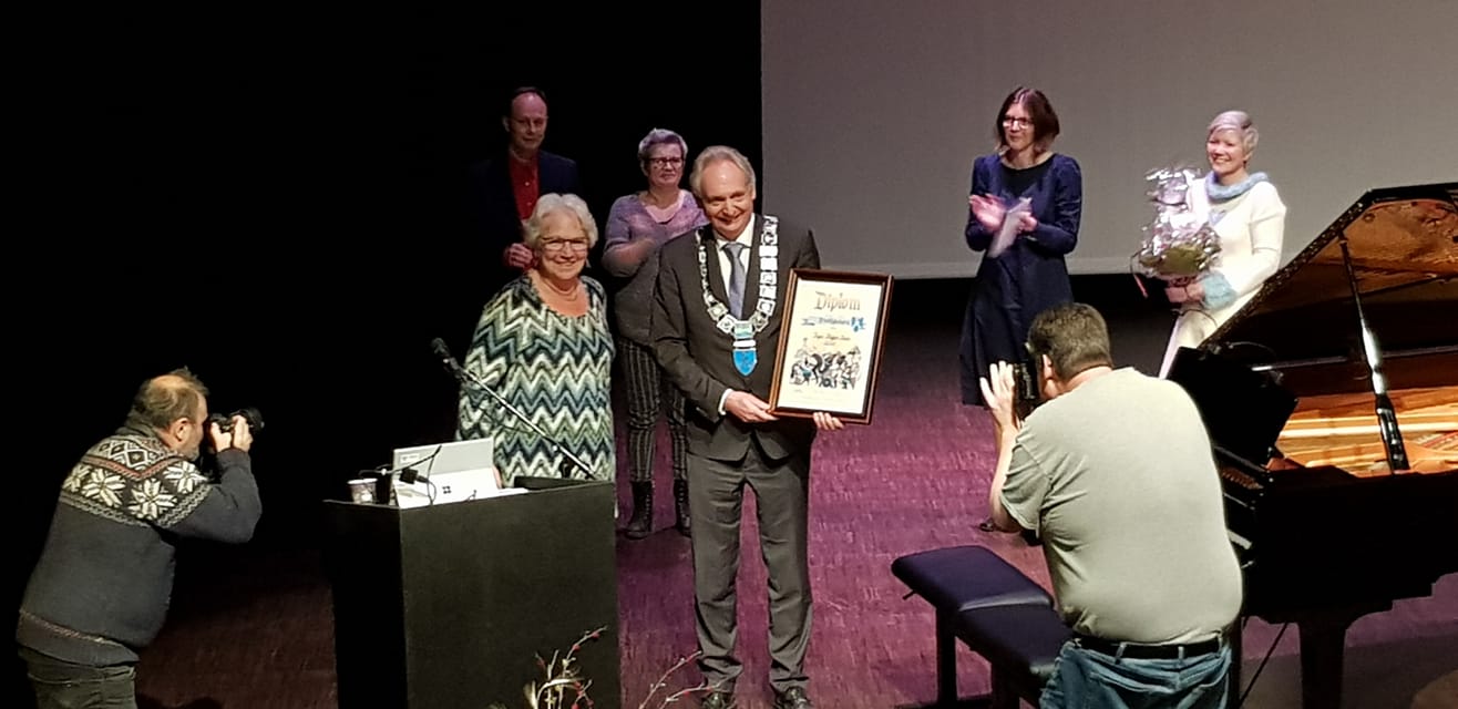 STORT ENGASJEMENT: "Du gir av deg selv til andre med vilje, optimisme og pågangsmot", sa Ordfører Gudbrand Kvaal til prisvinner Inger Heggen Olsen. FOTO: Trygve Ekeheien.