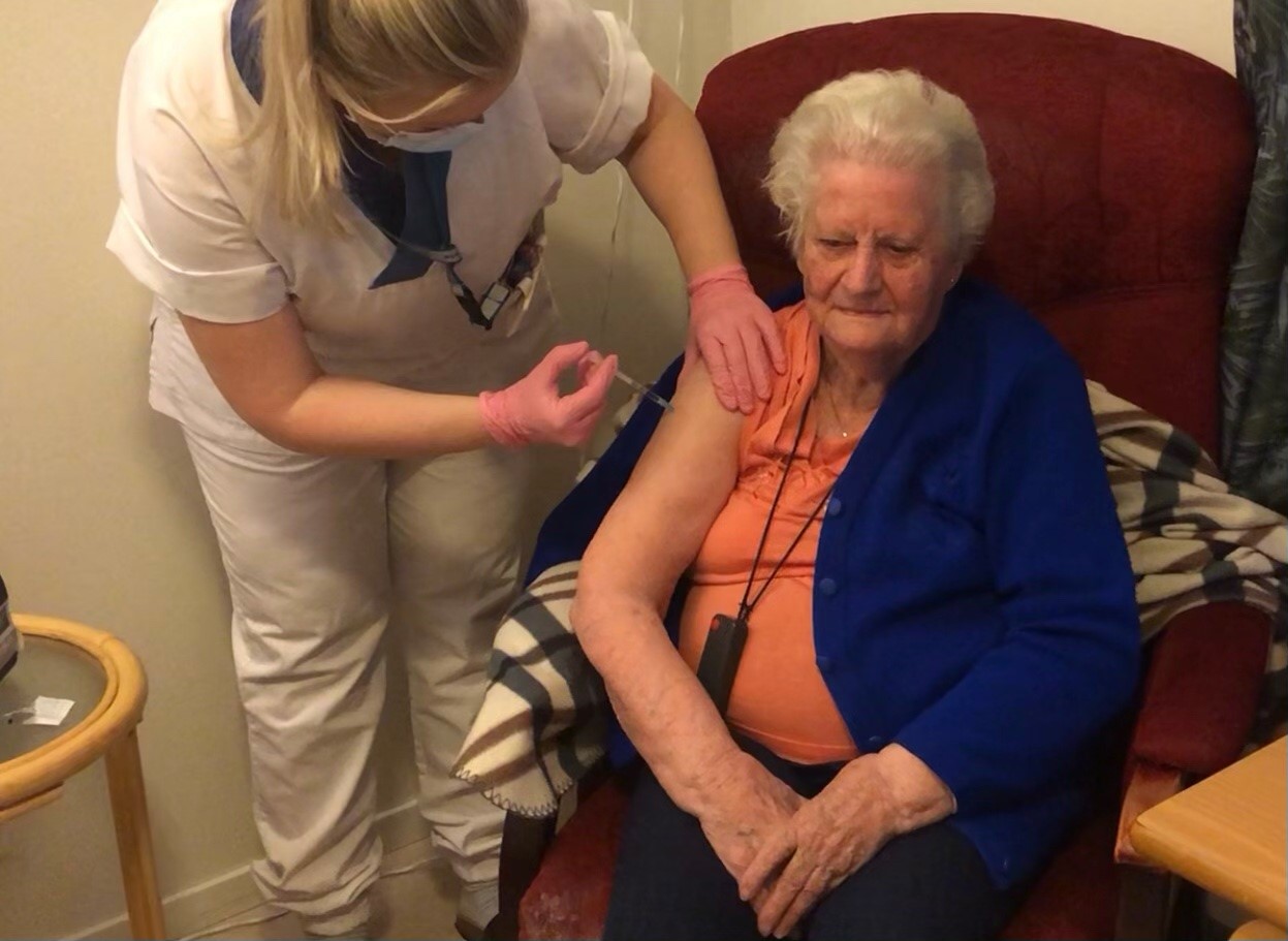 Vaksineringen er i gang: Reidun (90) var først ut